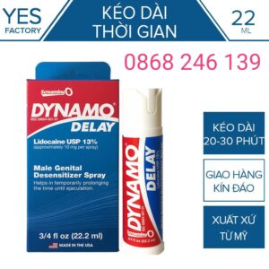 Chai xịt Dynamo delay kéo dài quan hệ nam New , giúp bạn kéo dài thời gian yêu lên tới 30 phút hoặc lâu hơn nữa do lượng xịt 1 hoặc 2 lần lên cậu bé. Với Chai xịt kéo dài thời gian Dynamo bạn có thể tự tin làm chủ cuộc yêu cực lâu , Không Gây Nóng Rát, không gây dị ứng, không có tác dụng phụ Khi sử dụng , Một sản phẩm Nhận được rất nhiều phản hồi tốt nhất trong các dòng chai xịt khác.