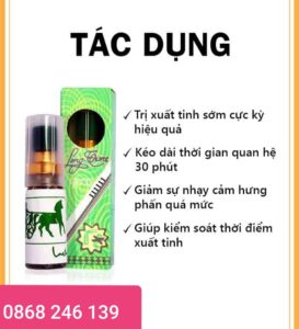 Thông tin sản phẩm: chống xuất tinh sớm longtime lạnh – Xuất xứ: Nhập Khẩu Thái Lan – Dung tích: 05ml – Đối tượng sử dụng: Dành Cho Nam – Tác dụng phụ: Không tác dụng phụ – Quy cách: Tuýp dầu thơm,Xịt – Lần sử dụng: 10 – 15 lần